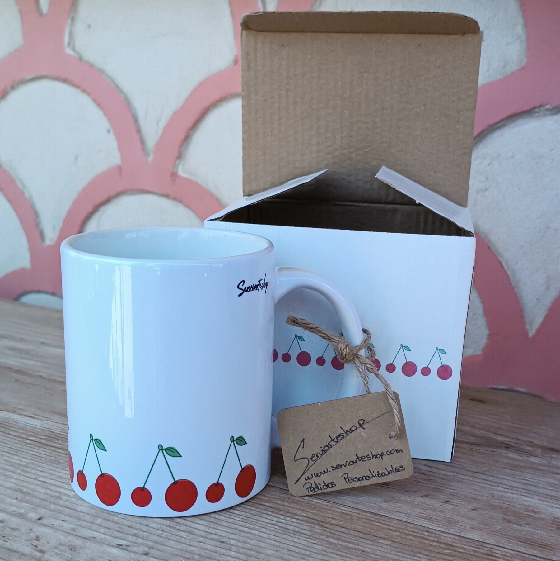 Cada sorbo puede ser una pausa bonita. Esta taza la hice en casa, de forma artesanal, sublimada a mano con un dibujo de cerezas que me inspira: simple, vibrante y lleno de calma. Quise capturar esa sensación de estar en un pequeño paraíso cotidiano. Un diseño luminoso que habla de lo natural, lo alegre y lo hecho con amor.